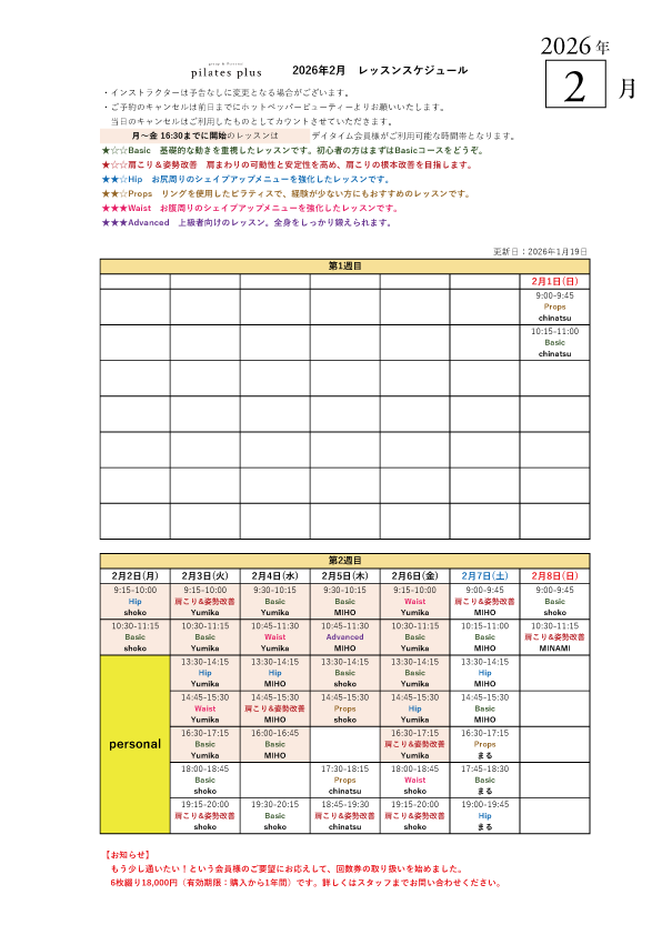 2026年2月のタイムテーブルを公開しました!