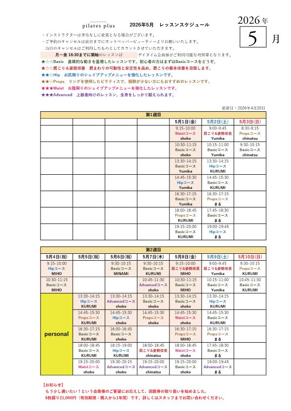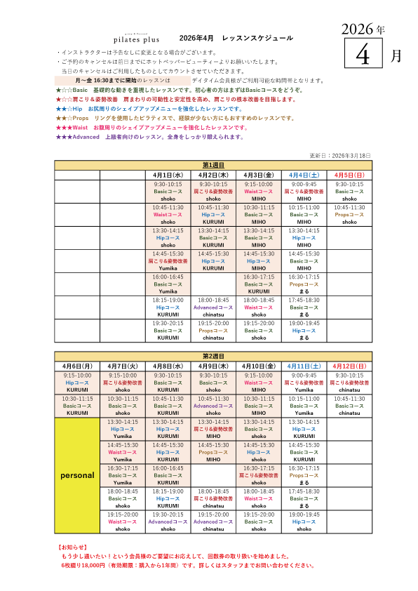 2026年4月のタイムテーブルを公開しました!