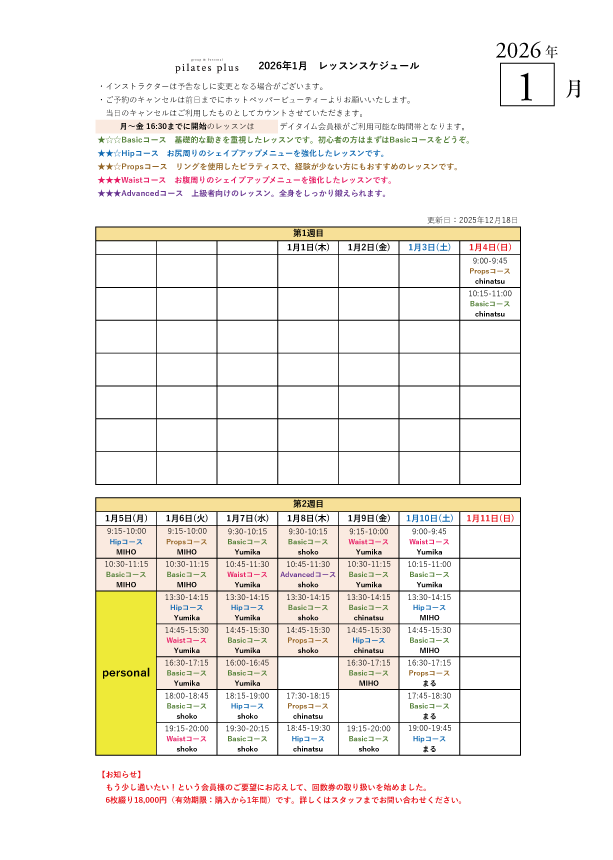トップページ ピラティスのメリット pilates plusのコンセプト キャンペーン 体験レッスンの流れ コース&料金 インストラクター紹介 レッスンスケジュール パーソナルレッスン 服装 スタジオ紹介 アクセス よくある質問 運営会社 採用情報 新着情報 ブログ お問い合わせ